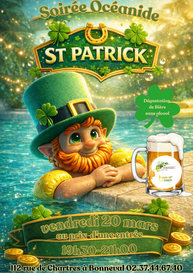 Actualités Soirée St Patrick Soirée St Patrick NOUVEAU SOIRÉE ST PATRICK VENDREDI 20 MARS DE 19H00 A 21H00 TARIF : au prix d'une entrée SAUF si vous êtes DÉGUISÉ ou si vous êtes un HOMME!!!!!